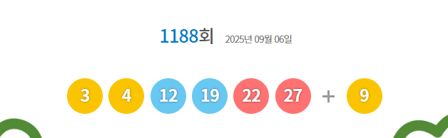 1188회 3 4 12 19 22 27 보너스 9