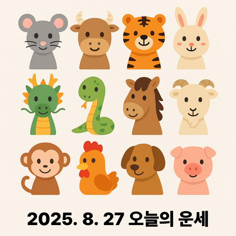 [오늘 운세] 2025년 8월 27일 오늘의 띠별 운세 - 출생연도별, 행운의 색, 행운의 숫자, 조심할 일